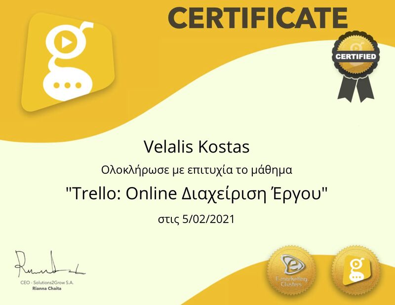 TRELLO Online Διαχείρηση Εργου CERTIFICATE