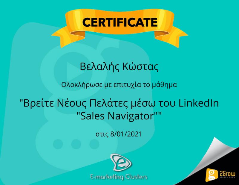 Βρείτε Νέους Πελάτες Μέσω του LinkedIn “Sales Navigator” CERTIFICATE